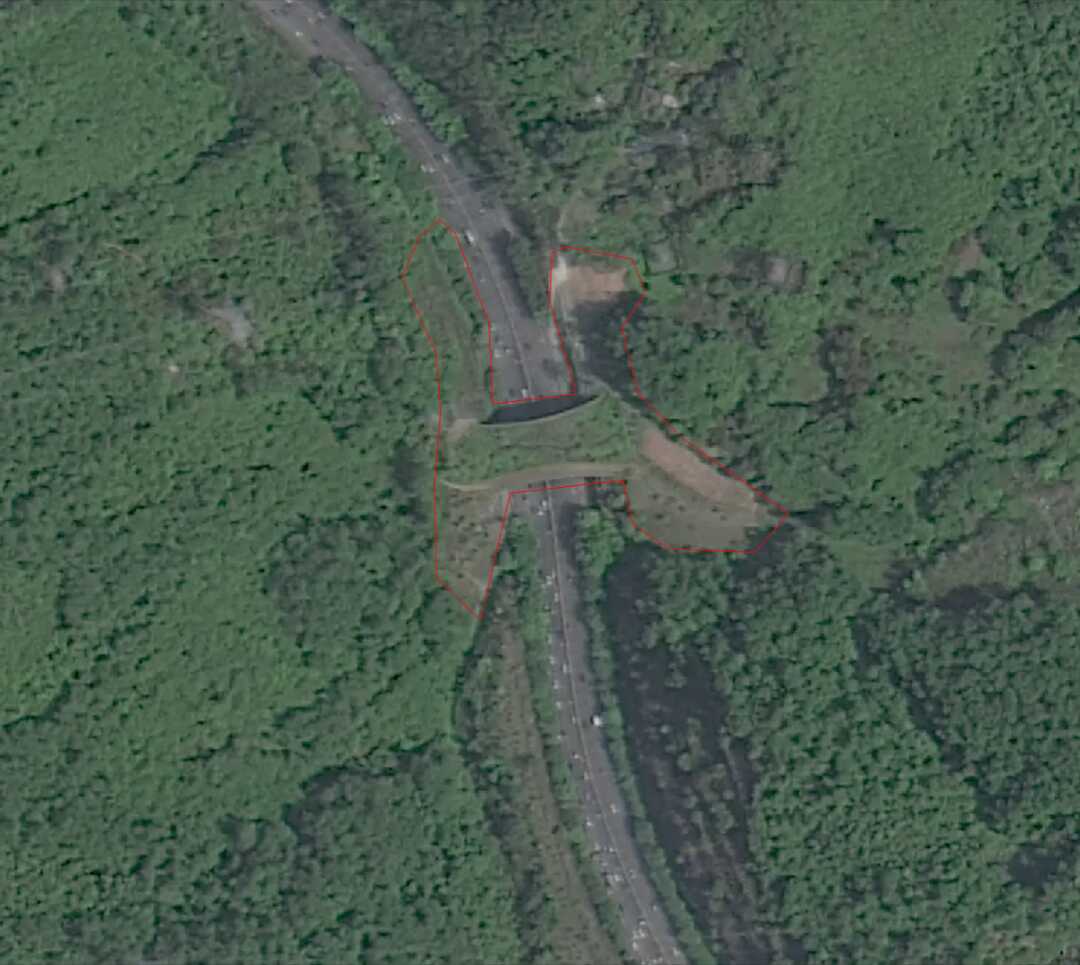 曾经,道路的建设割裂了梅林山和银湖山,切断了野生动物的通道。卫星图像显示,鲲鹏径一号桥的搭建“缝合”了深圳中部山脊线,乔木林、灌草丛、池塘湿地多样生境,方便了动物迁徙与觅食,红外相机多次记录下豹猫等野生动物的身影。