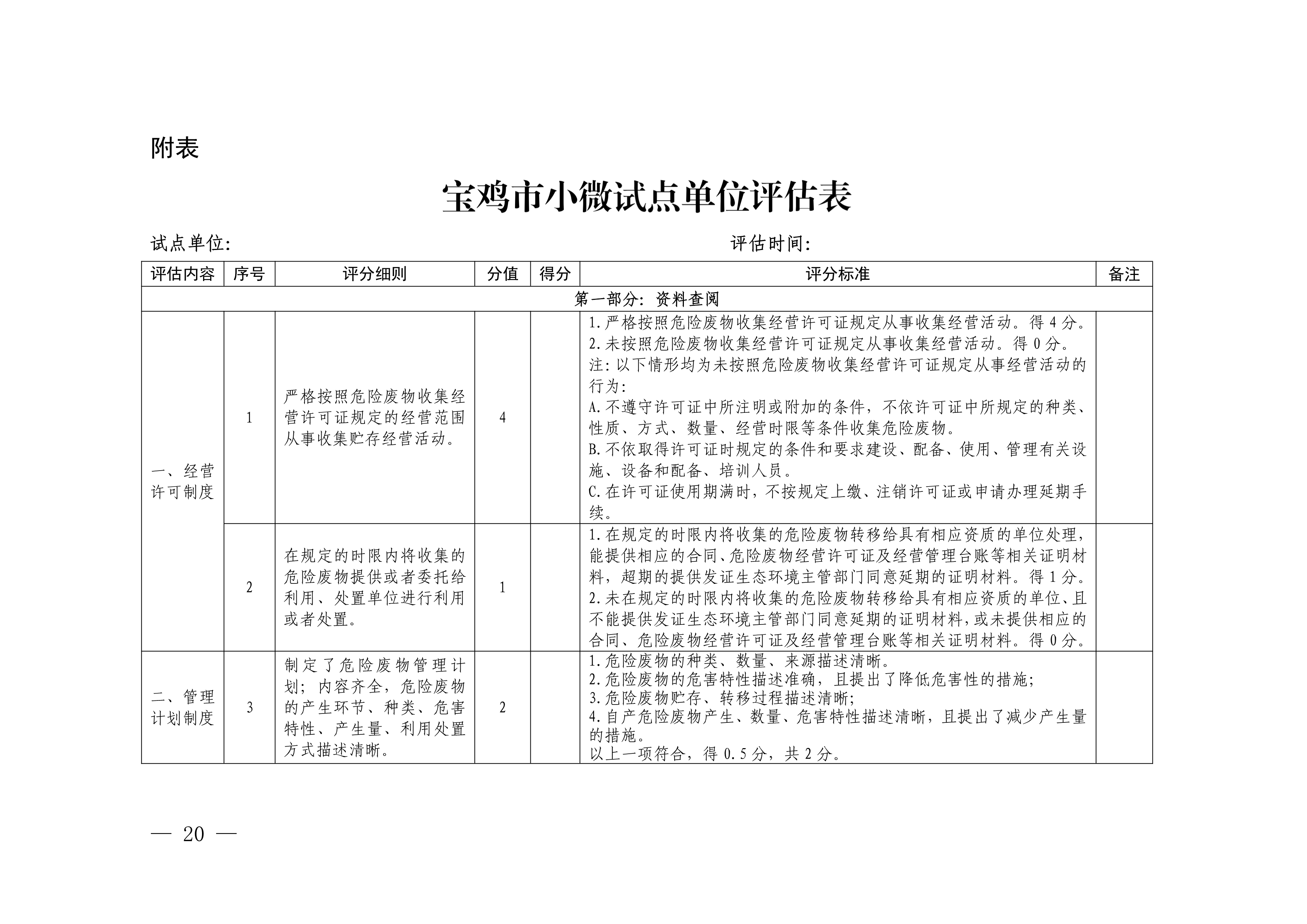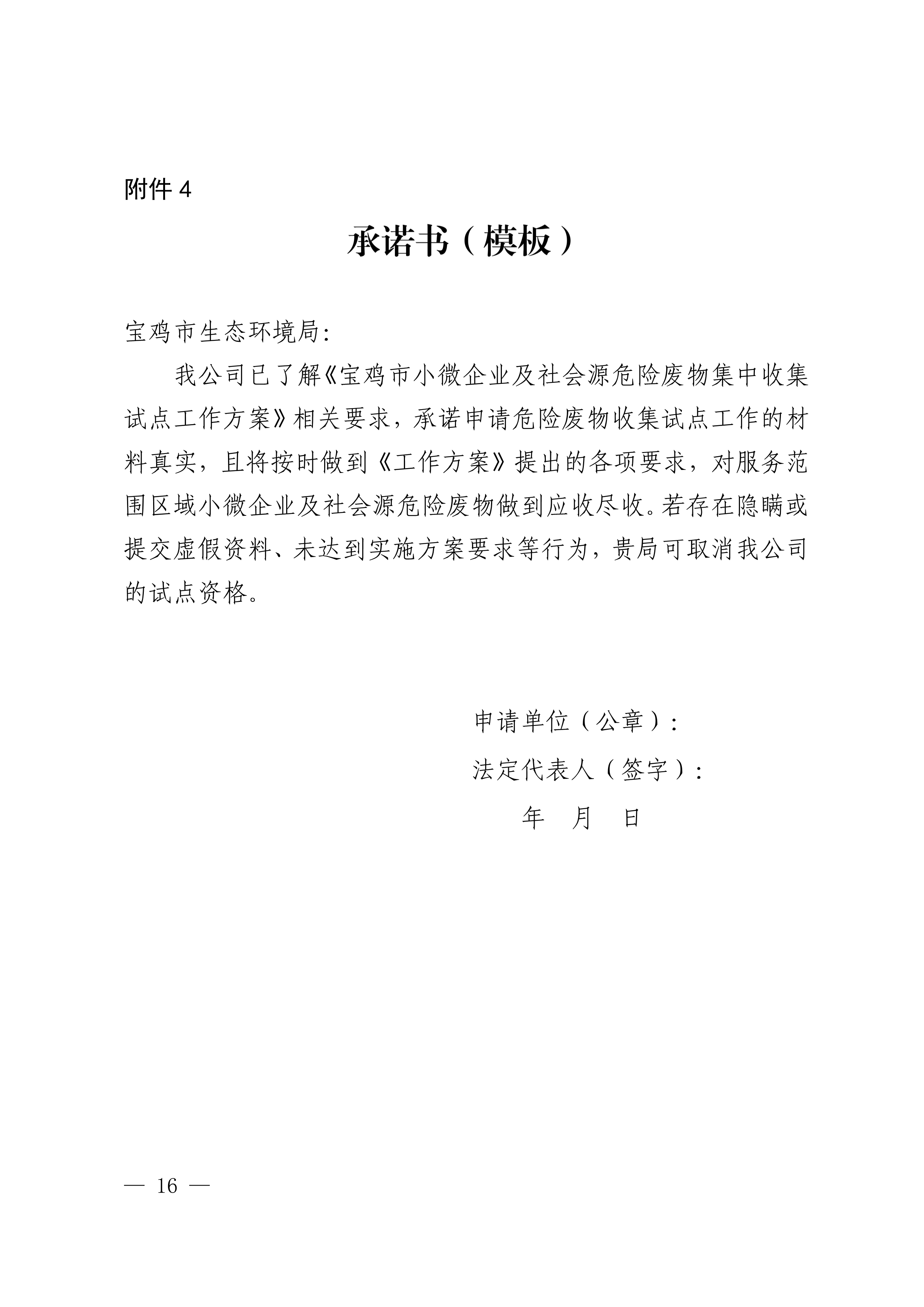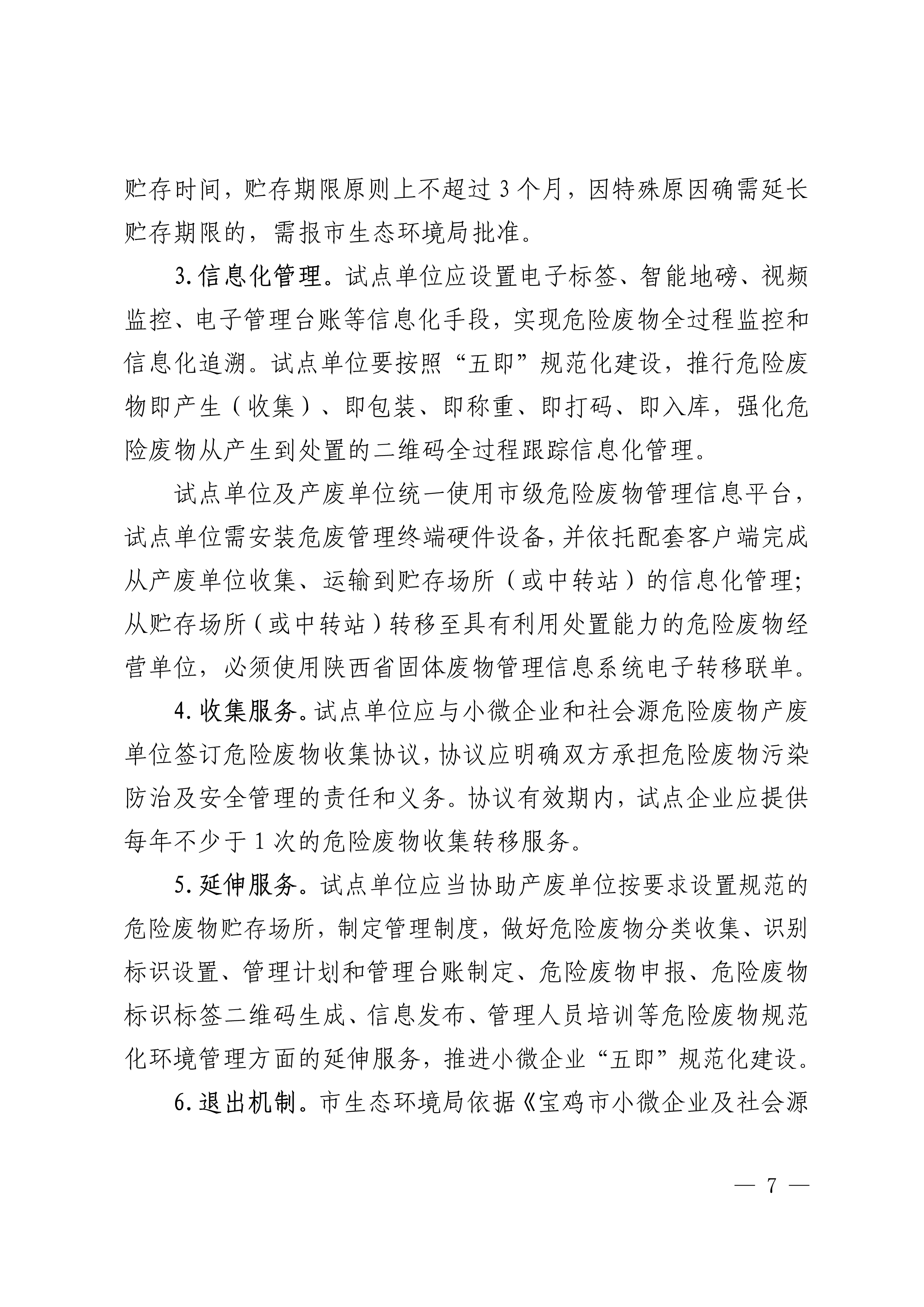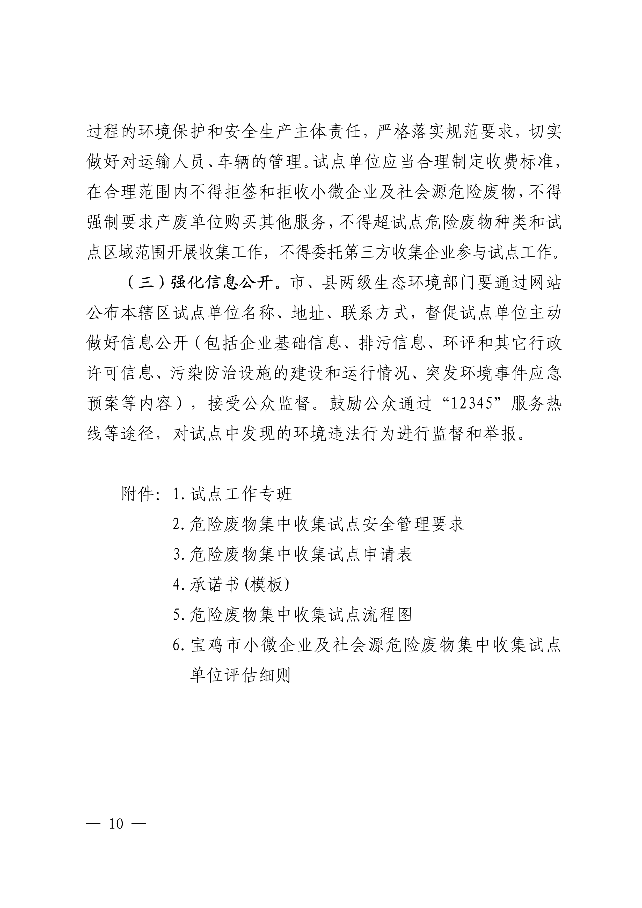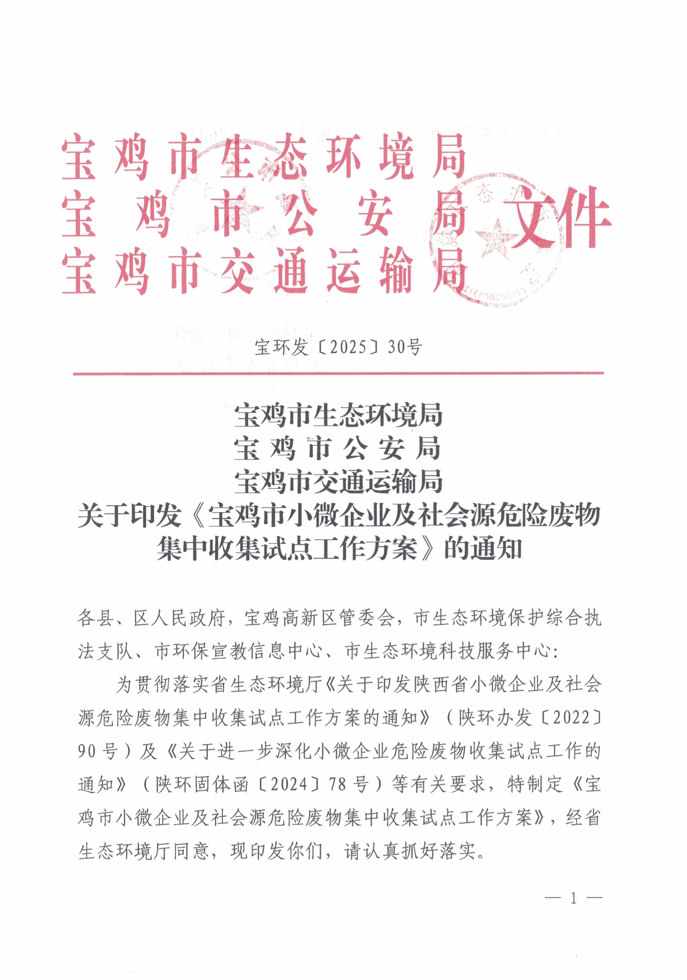 关于印发《宝鸡市小微企业及社会源危险废物集中收集试点工作方案》的通知