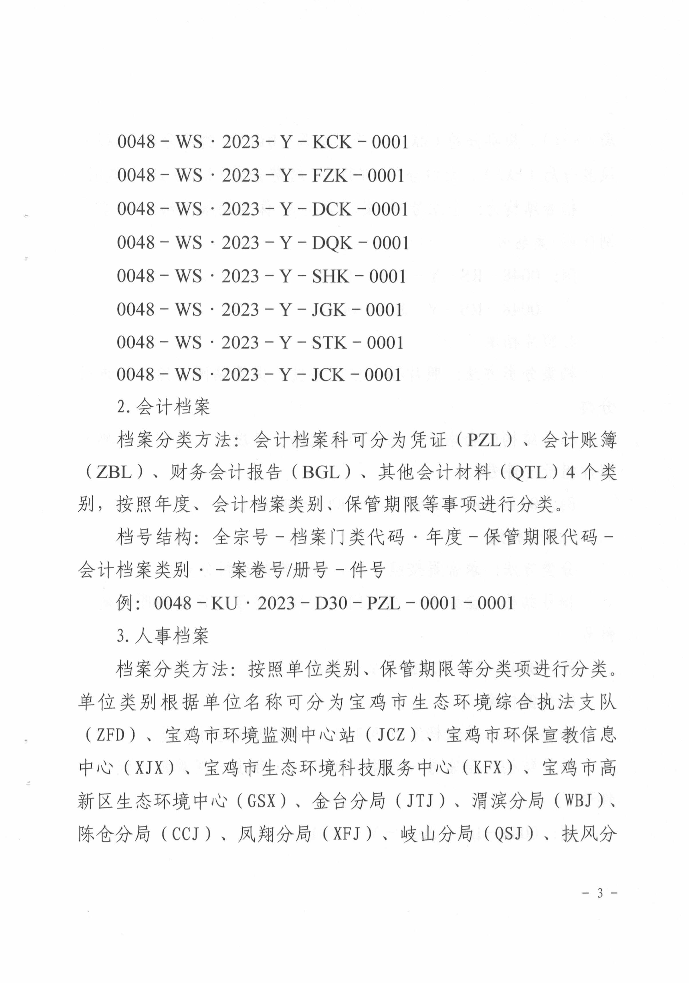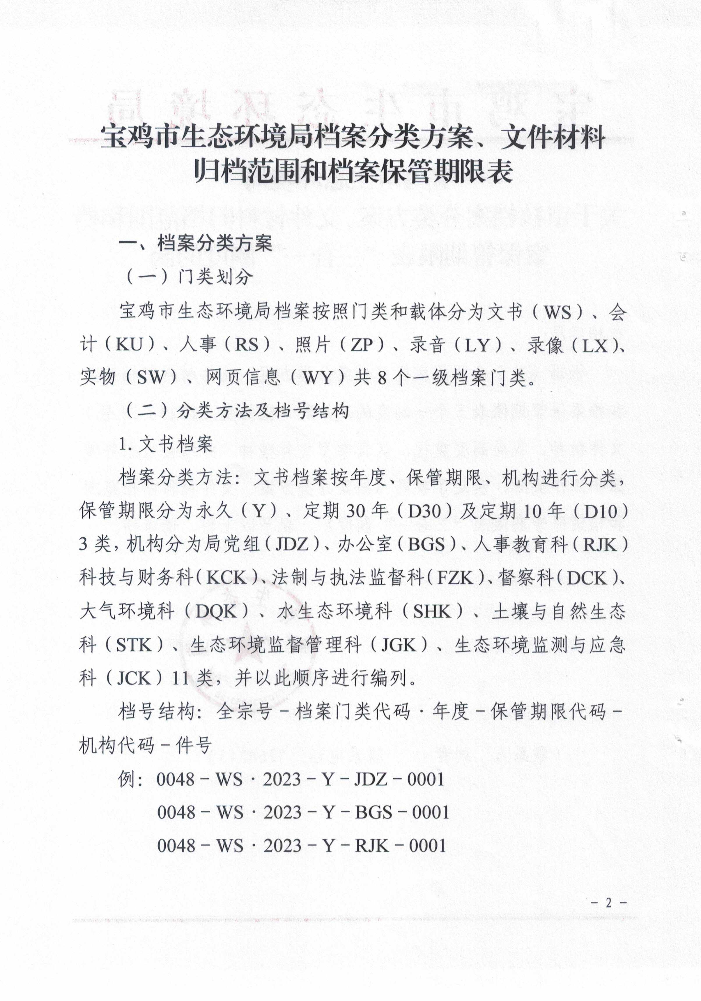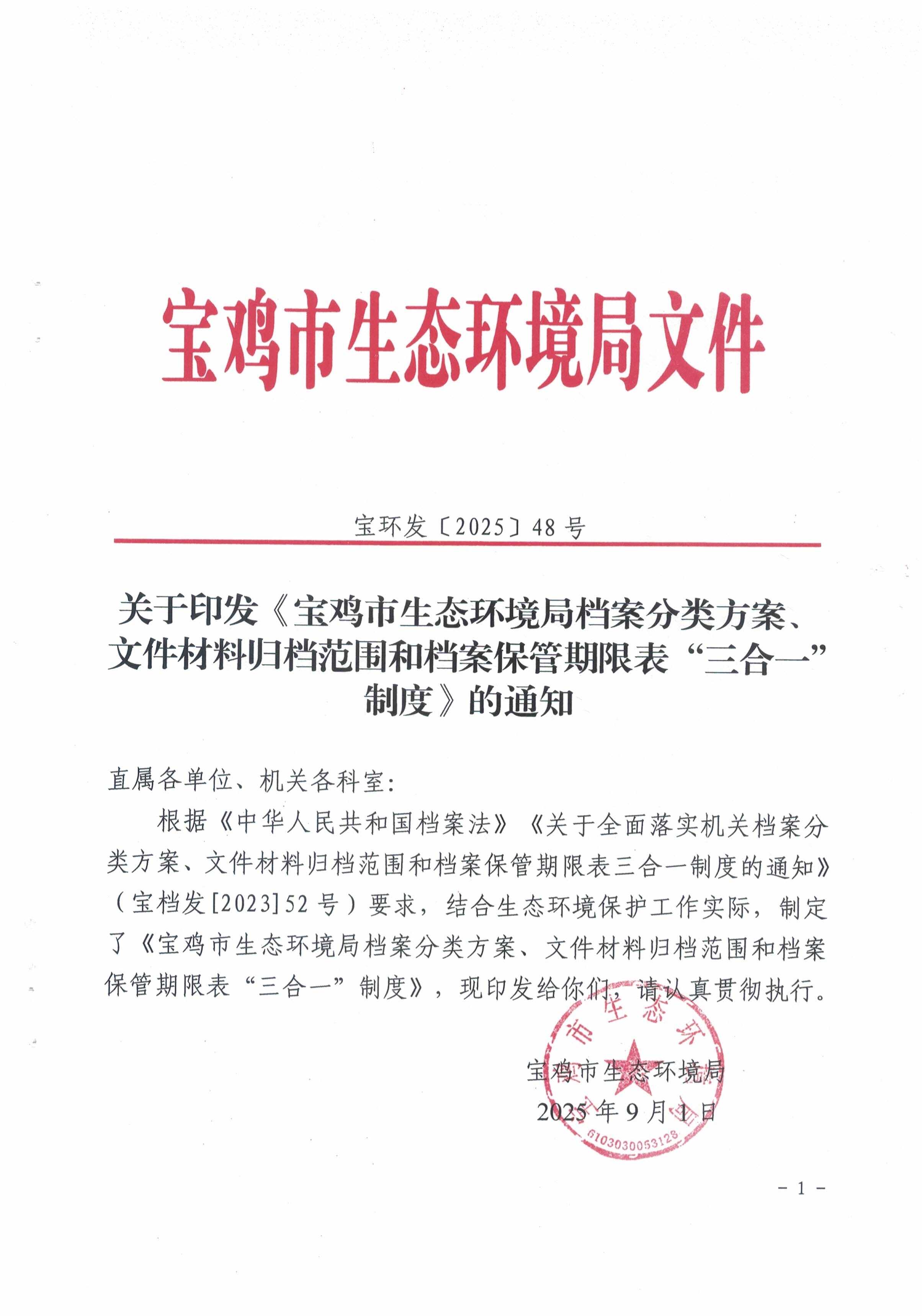 关于印发《宝鸡市生态环境局档案分类方案、文件材料归档范围和档案保管期限表“三合一”制度》的通知