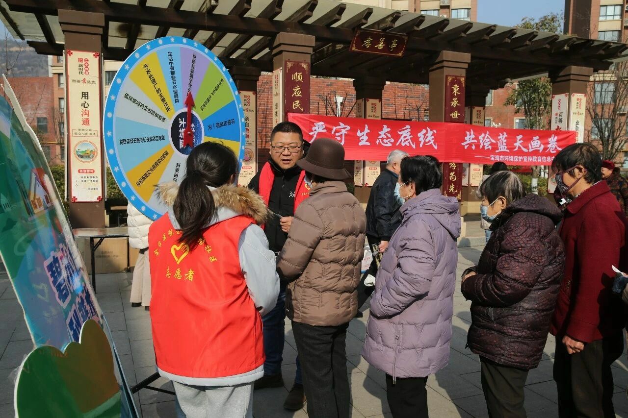 1月22日,金台区海德佳园小区院内格外热闹,由宝鸡市环境保护宣传教育信息中心联合金台区团结社区举办的“严守生态底线,共绘蓝天画卷”生态环保科普宣传进社区活动在此开展。活动通过沉浸式互动体验,让环保知识变得鲜活可感、贴近生活。