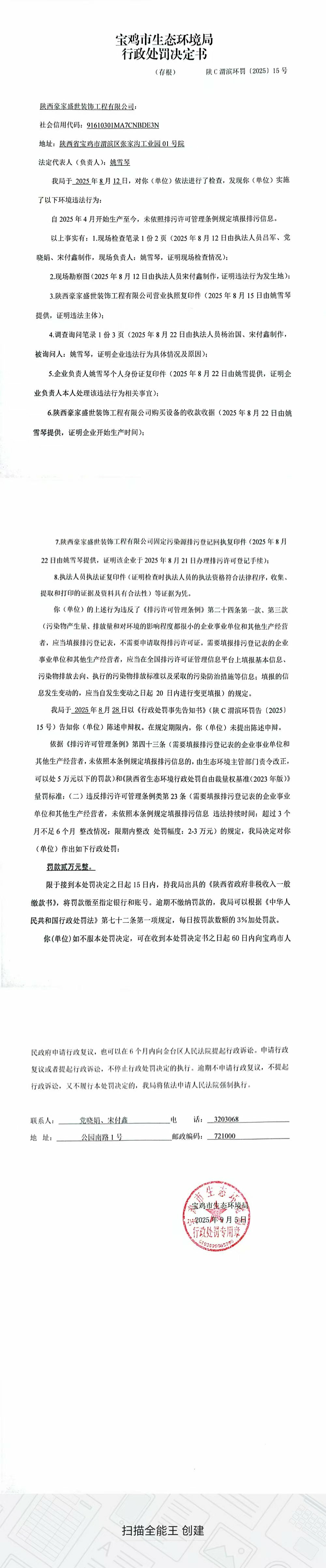 宝鸡市生态环境局行政处罚决定书(陕C渭滨环罚〔2025〕15号)