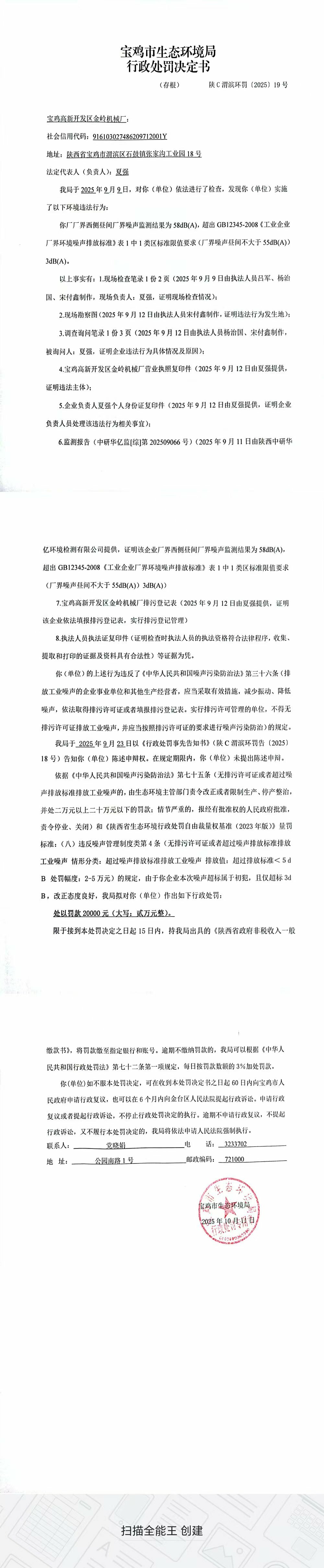 宝鸡市生态环境局行政处罚决定书(陕C渭滨环罚〔2025〕19号)