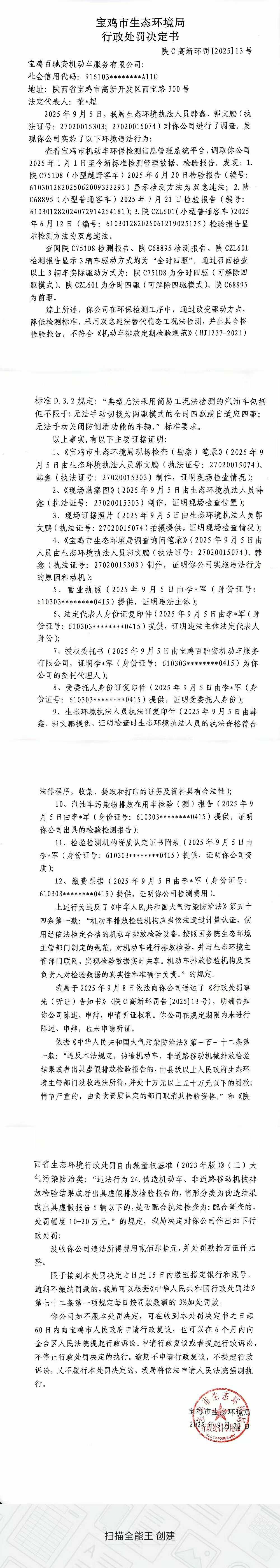 宝鸡市生态环境局行政处罚决定书(陕C高新环罚[2025]13号)