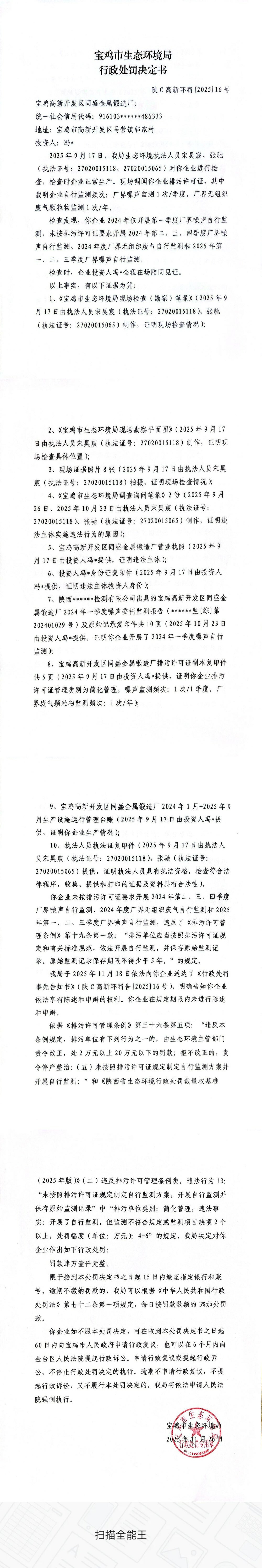 宝鸡市生态环境局行政处罚决定书(陕C高新环罚[2025]16号)