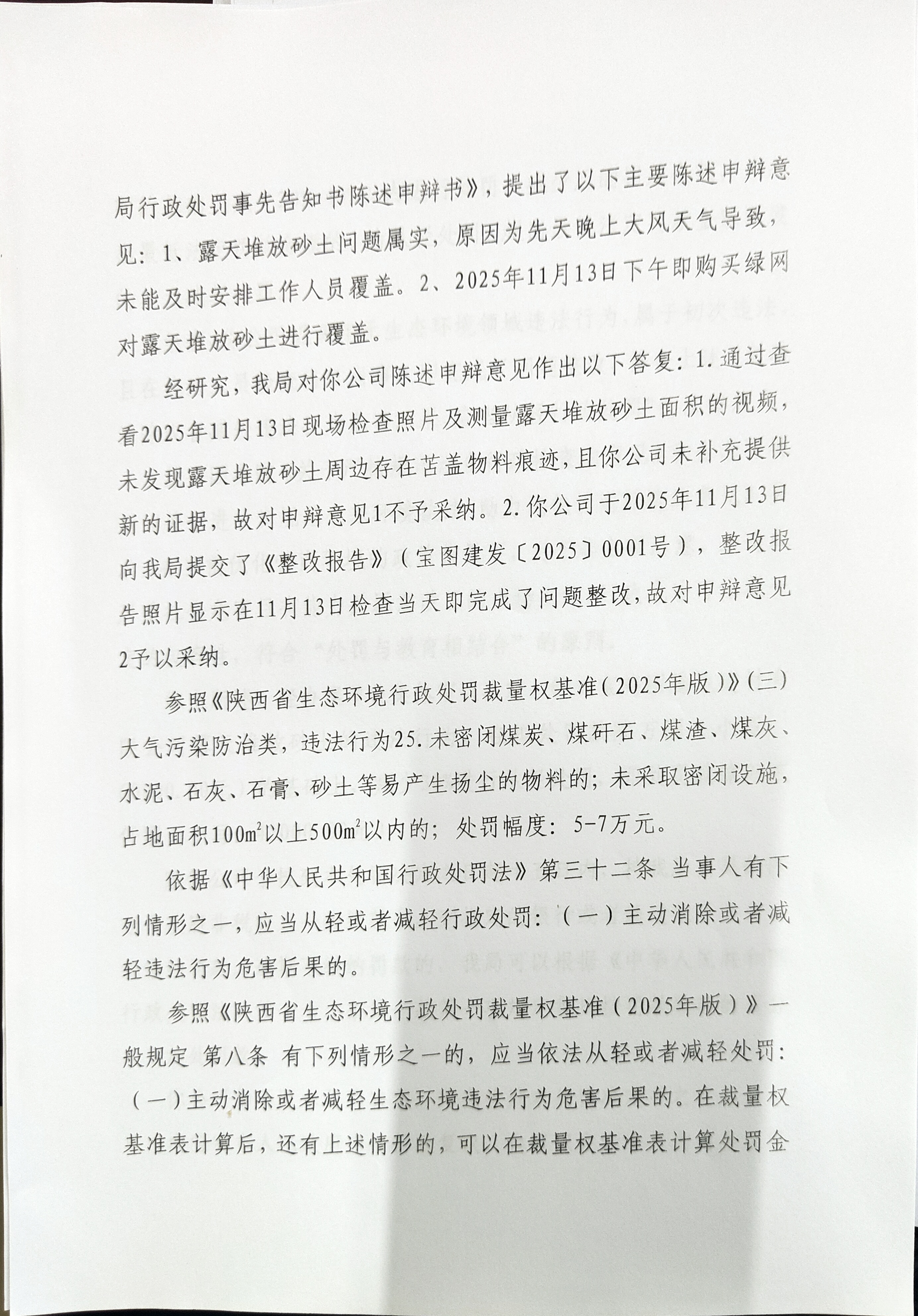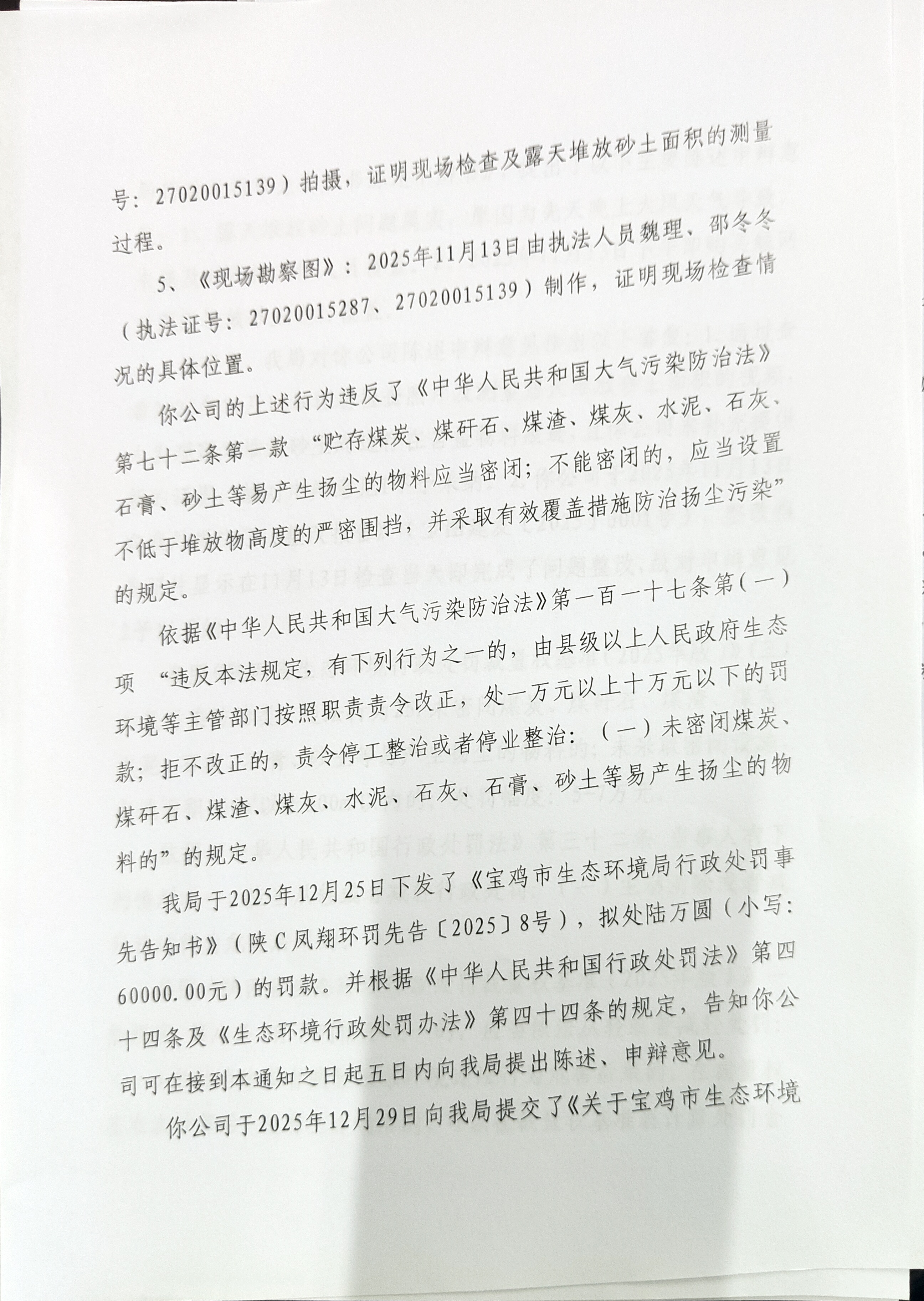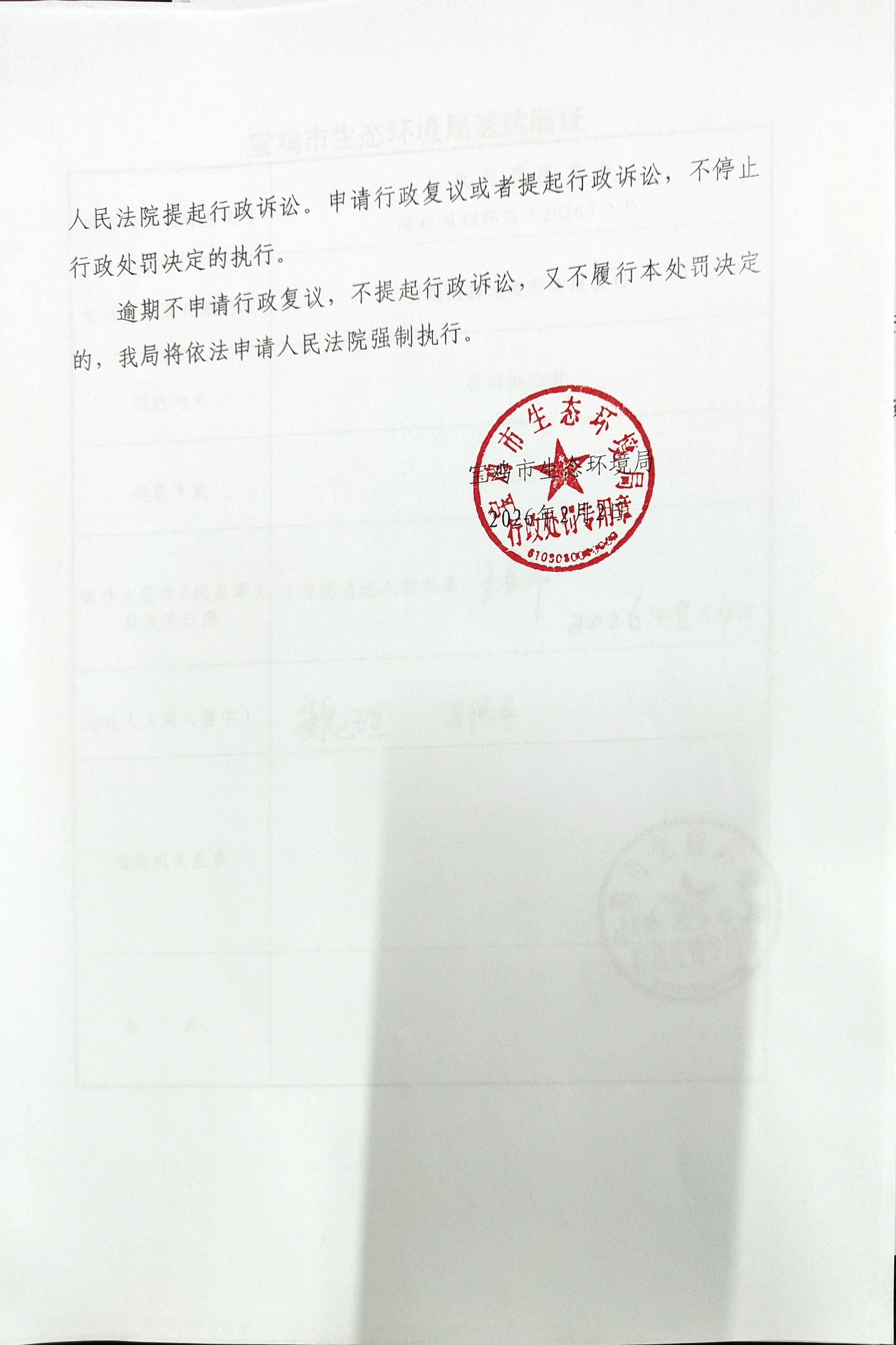 宝鸡市生态环境局行政处罚决定书陕C凤翔环罚〔2026〕2号