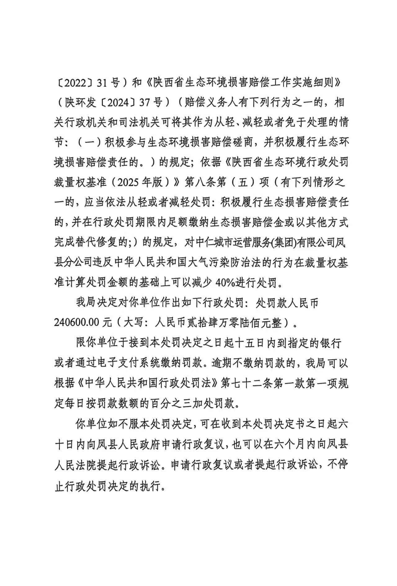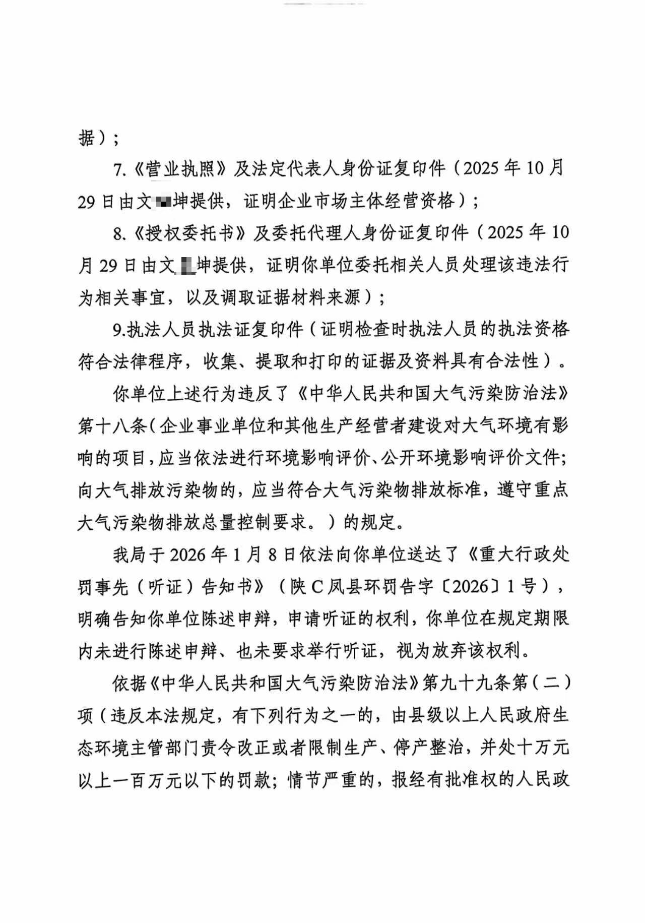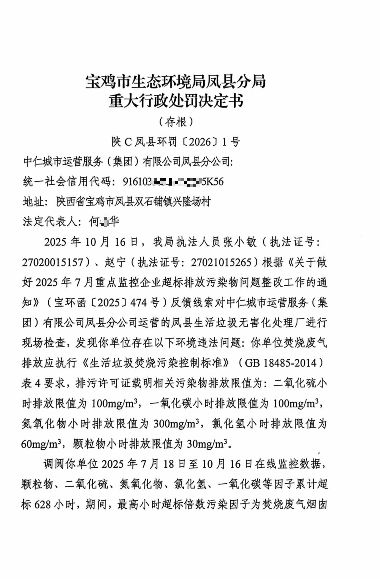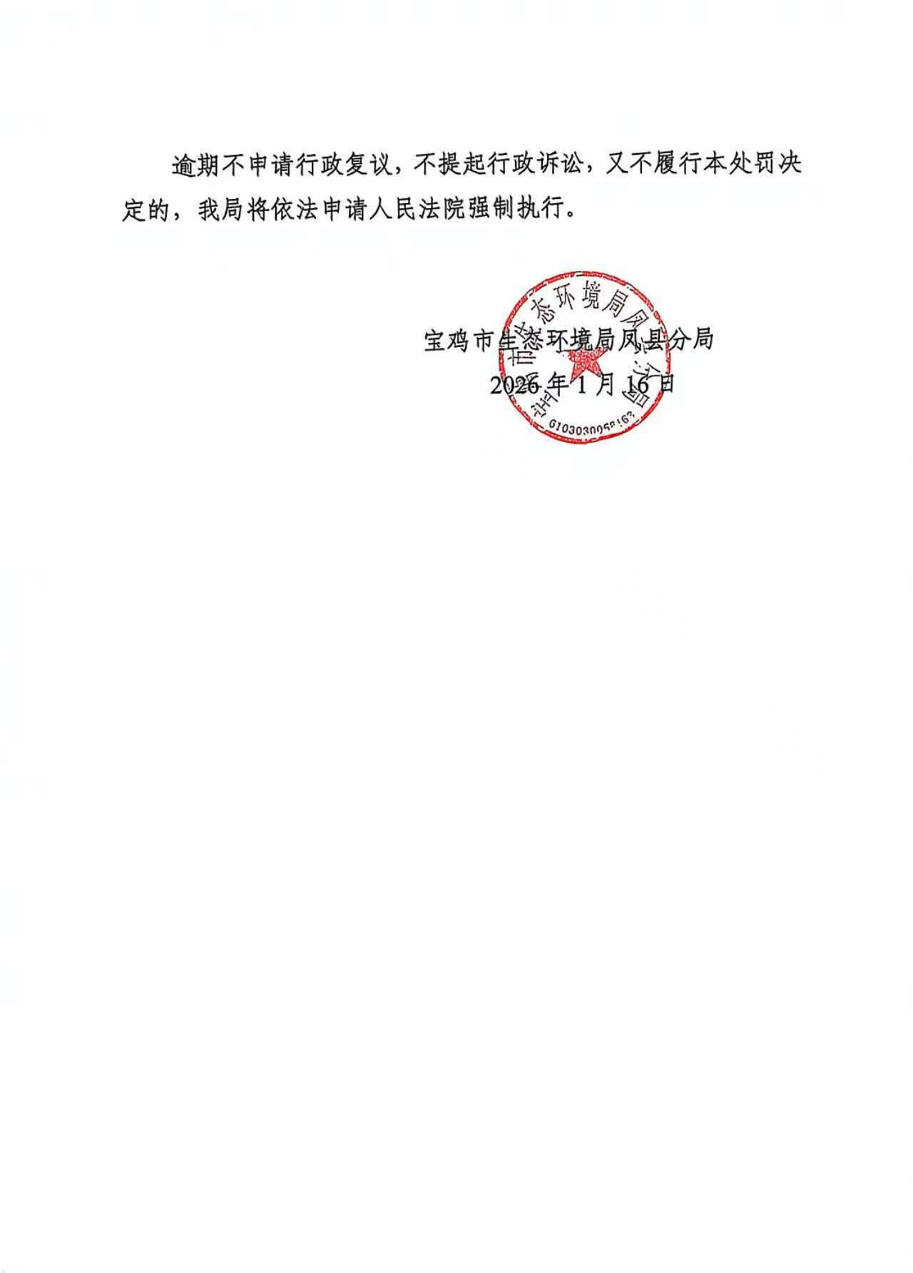 宝鸡市生态环境局凤县分局重大行政处罚决定书陕C凤县环罚〔2026〕1号