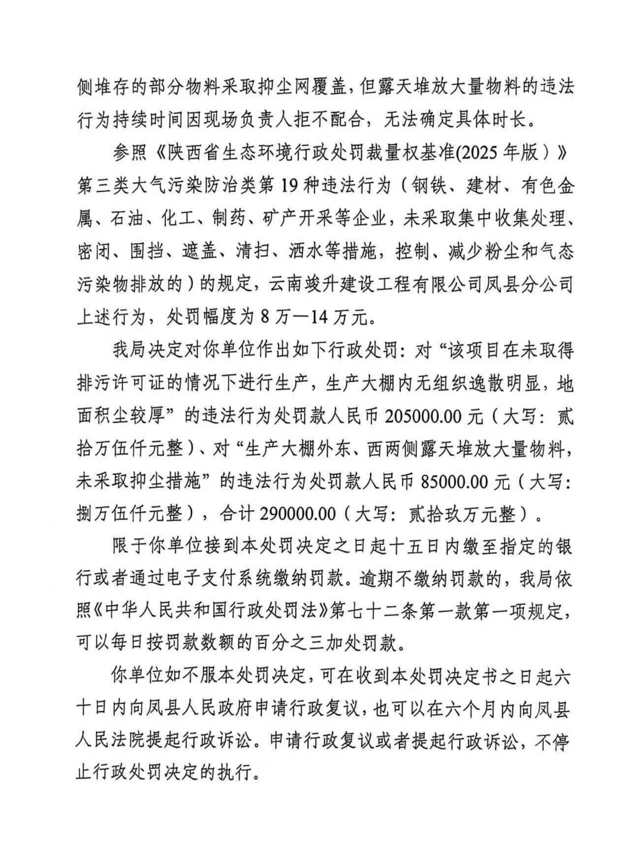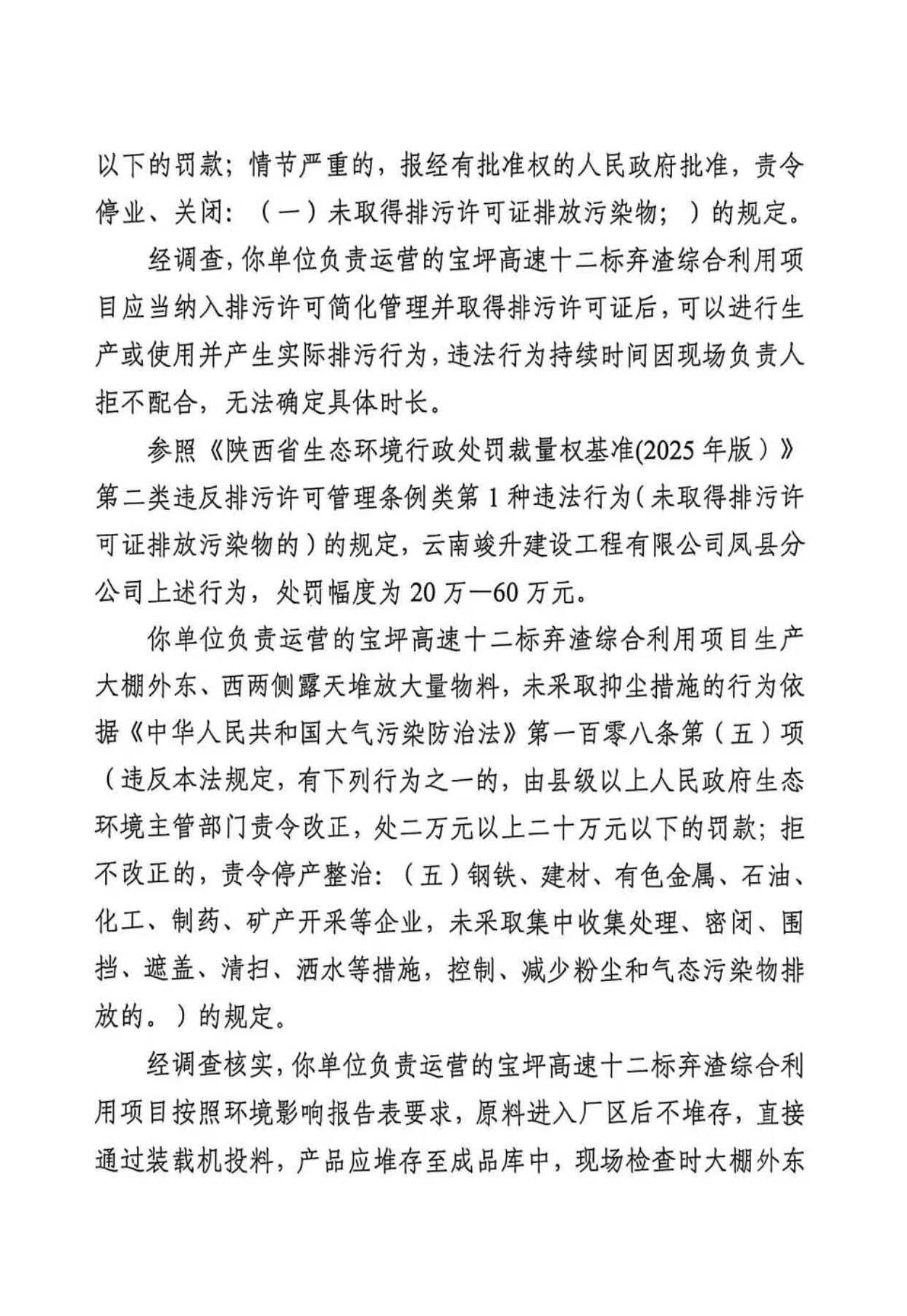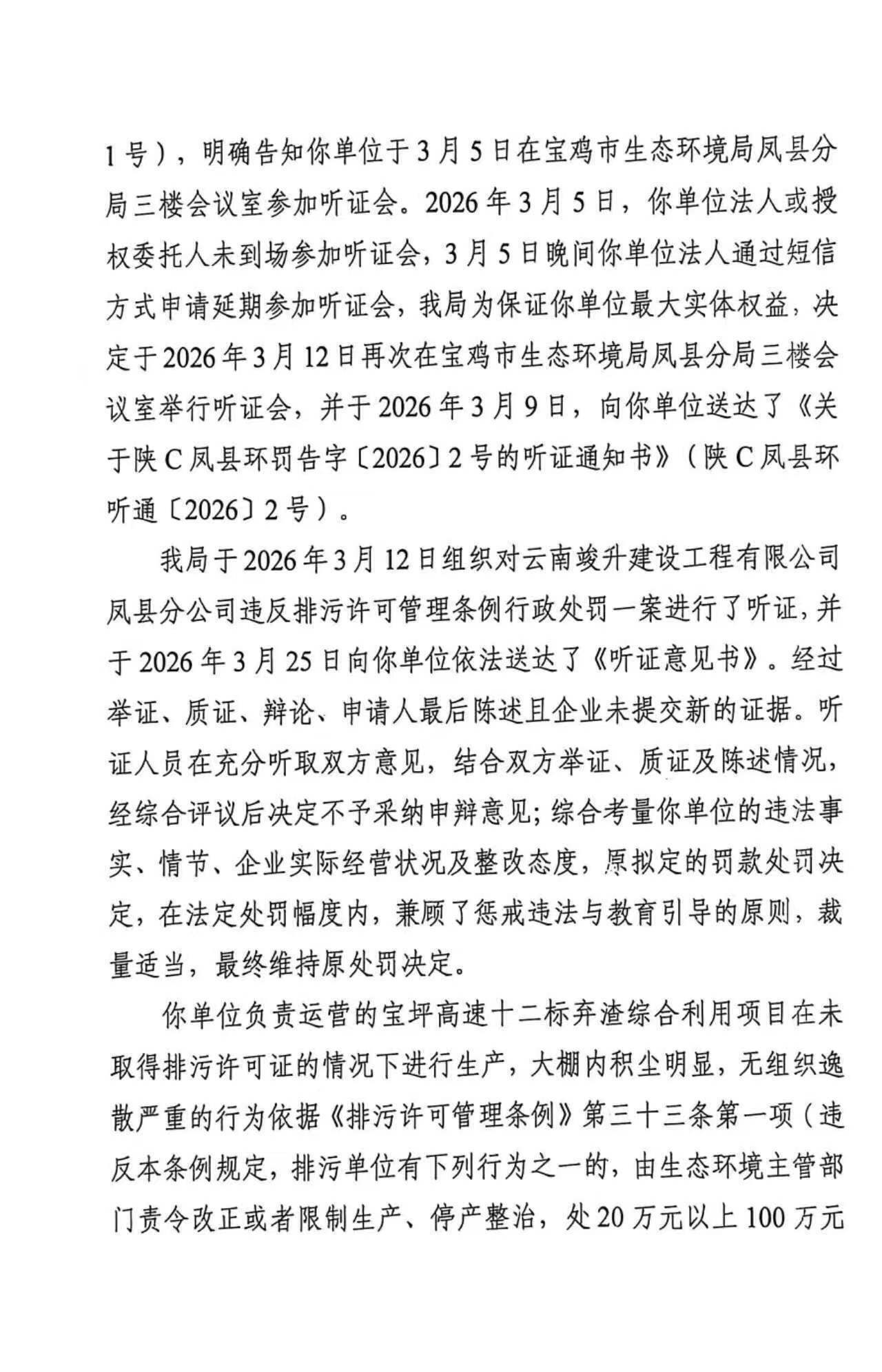 宝鸡市生态环境局凤县分局重大行政处罚决定书 陕C凤县环罚〔2026〕4号
