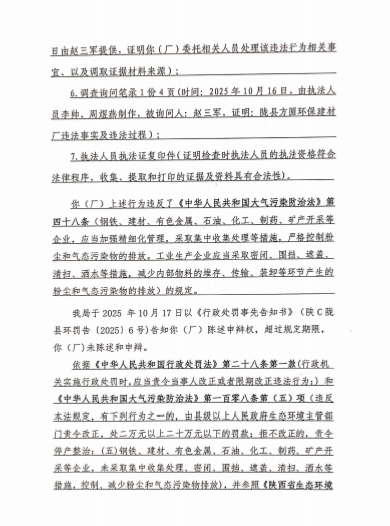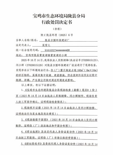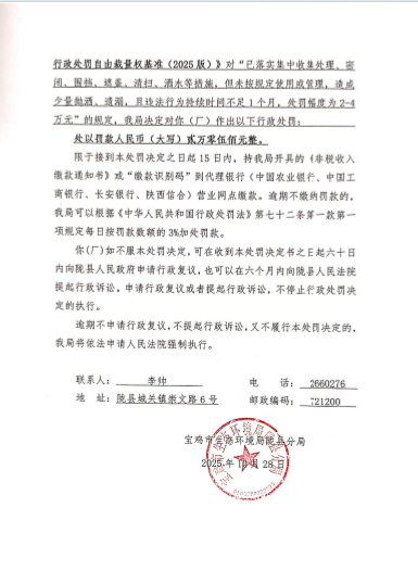 宝鸡市生态环境局陇县分局行政处罚决定书 陕C陇县环罚〔2025〕6号