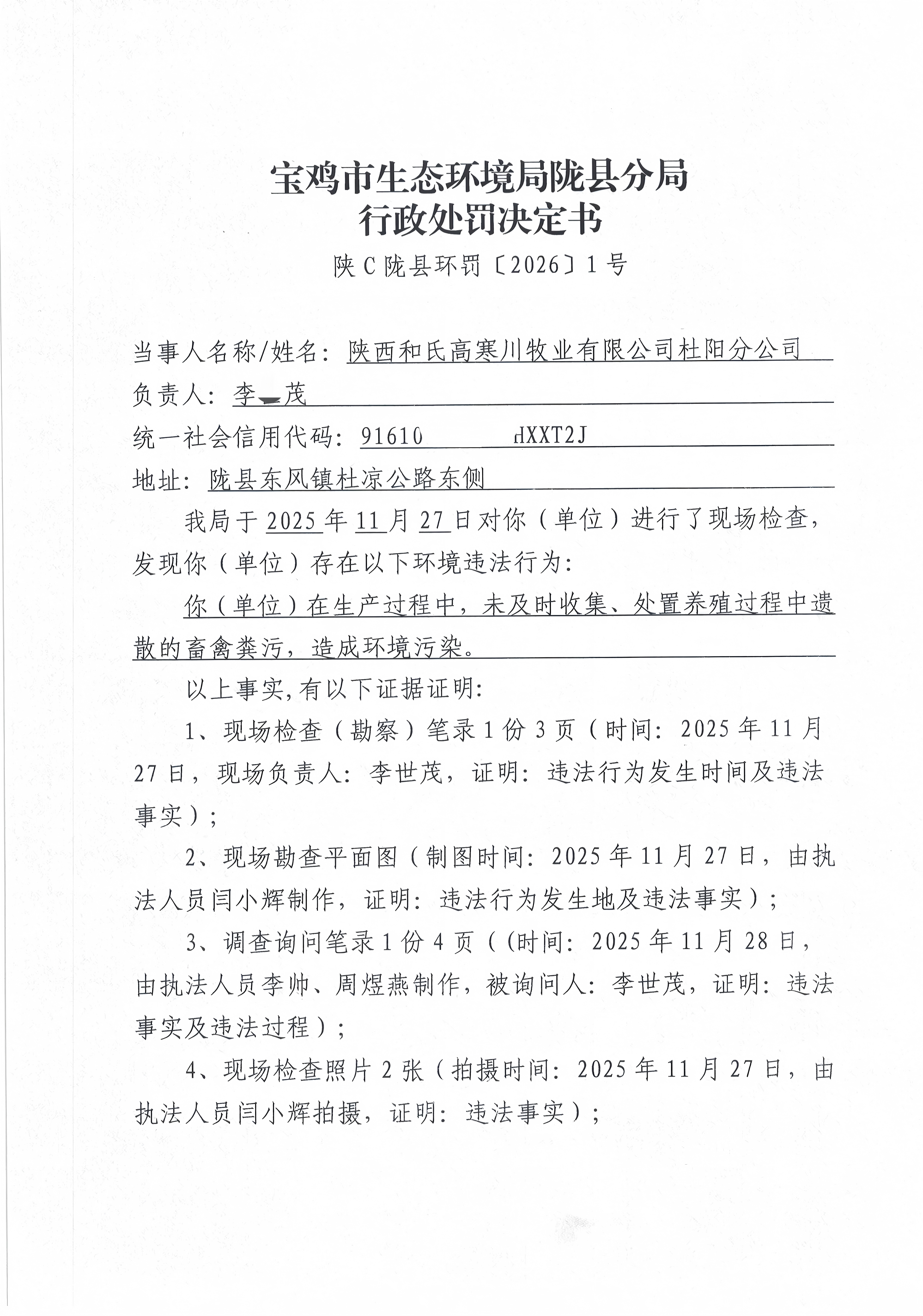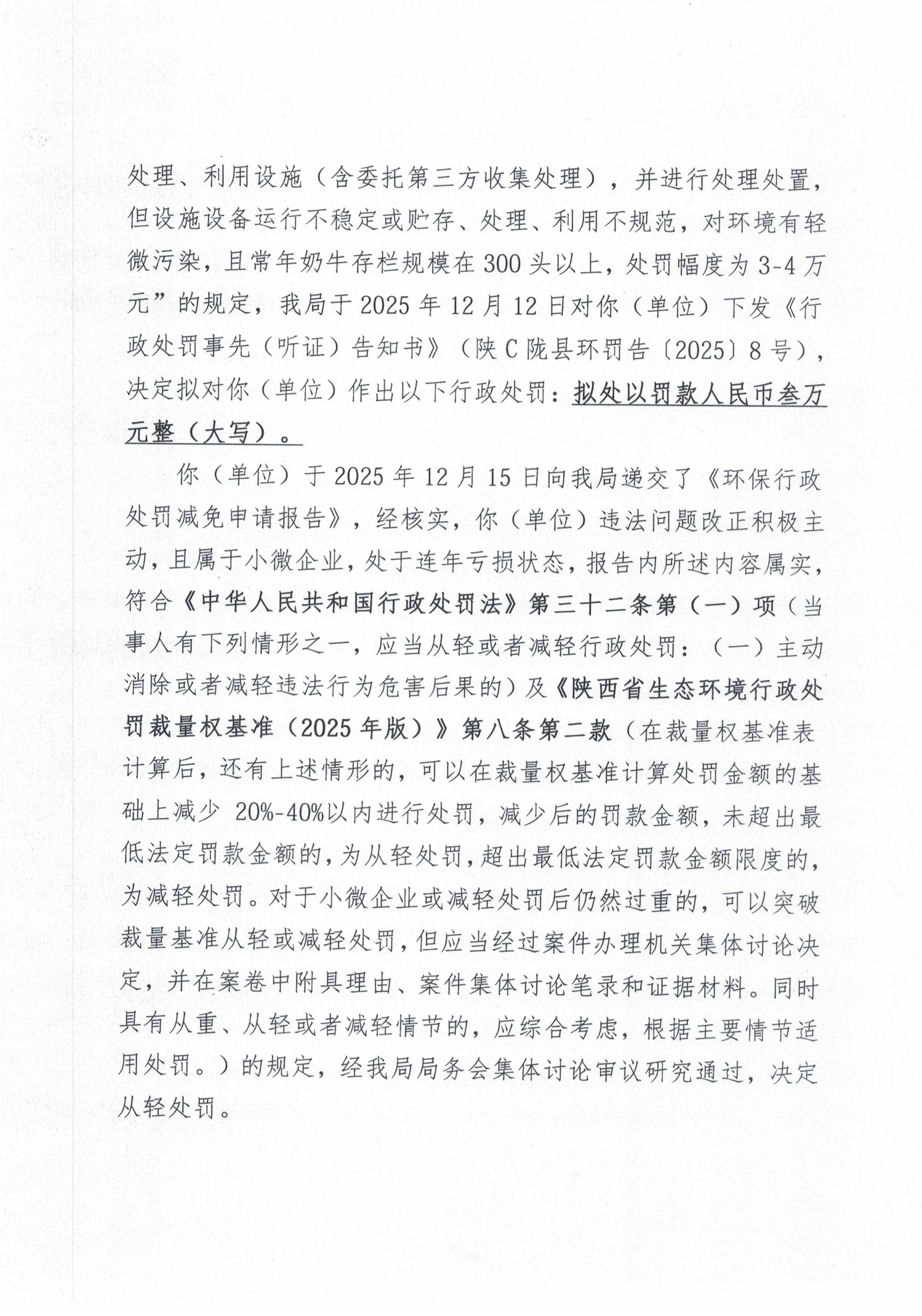 宝鸡市生态环境局陇县分局行政处罚决定书(陕C陇县环罚【2026】1号)