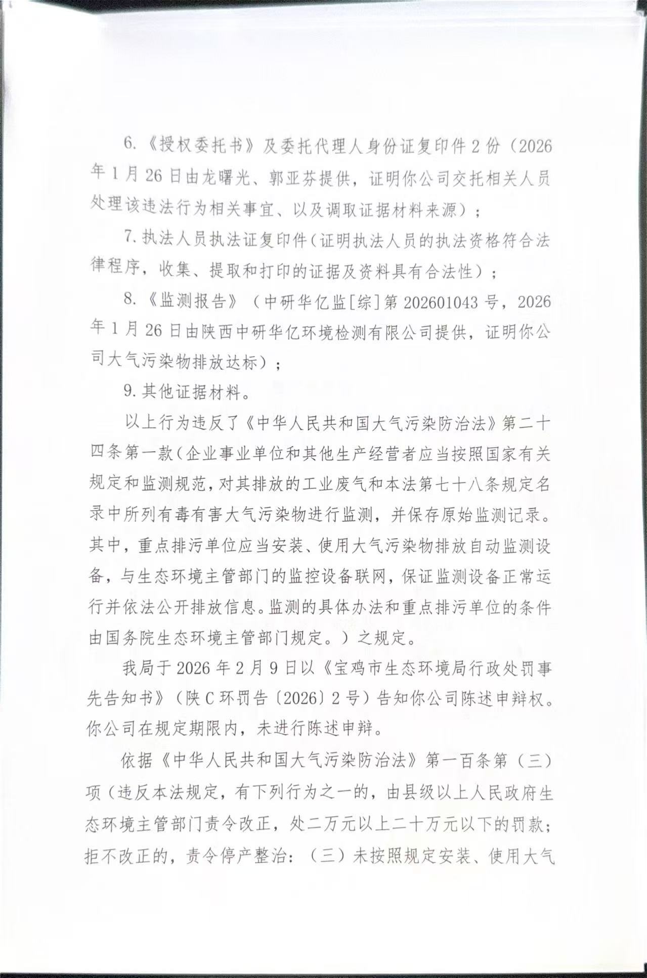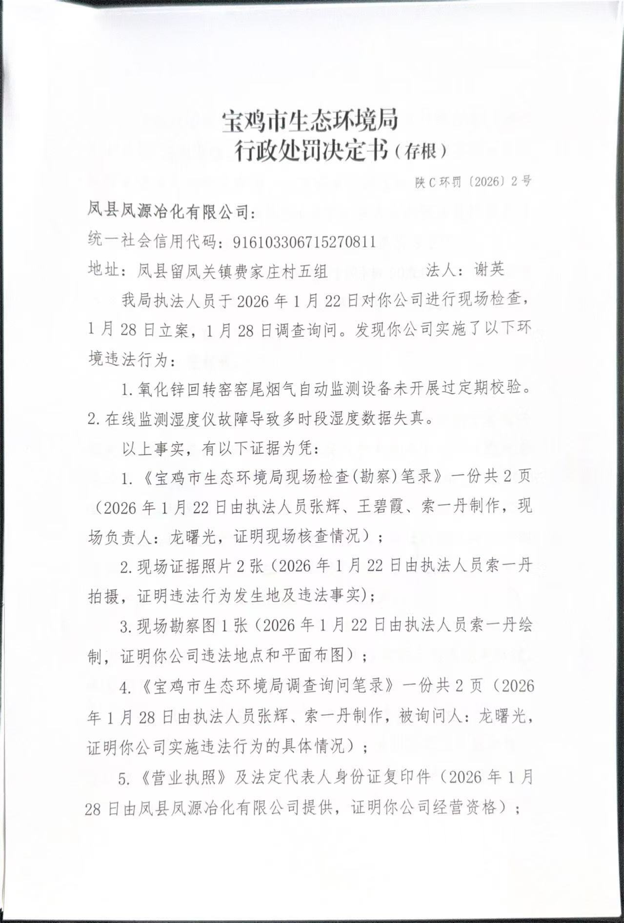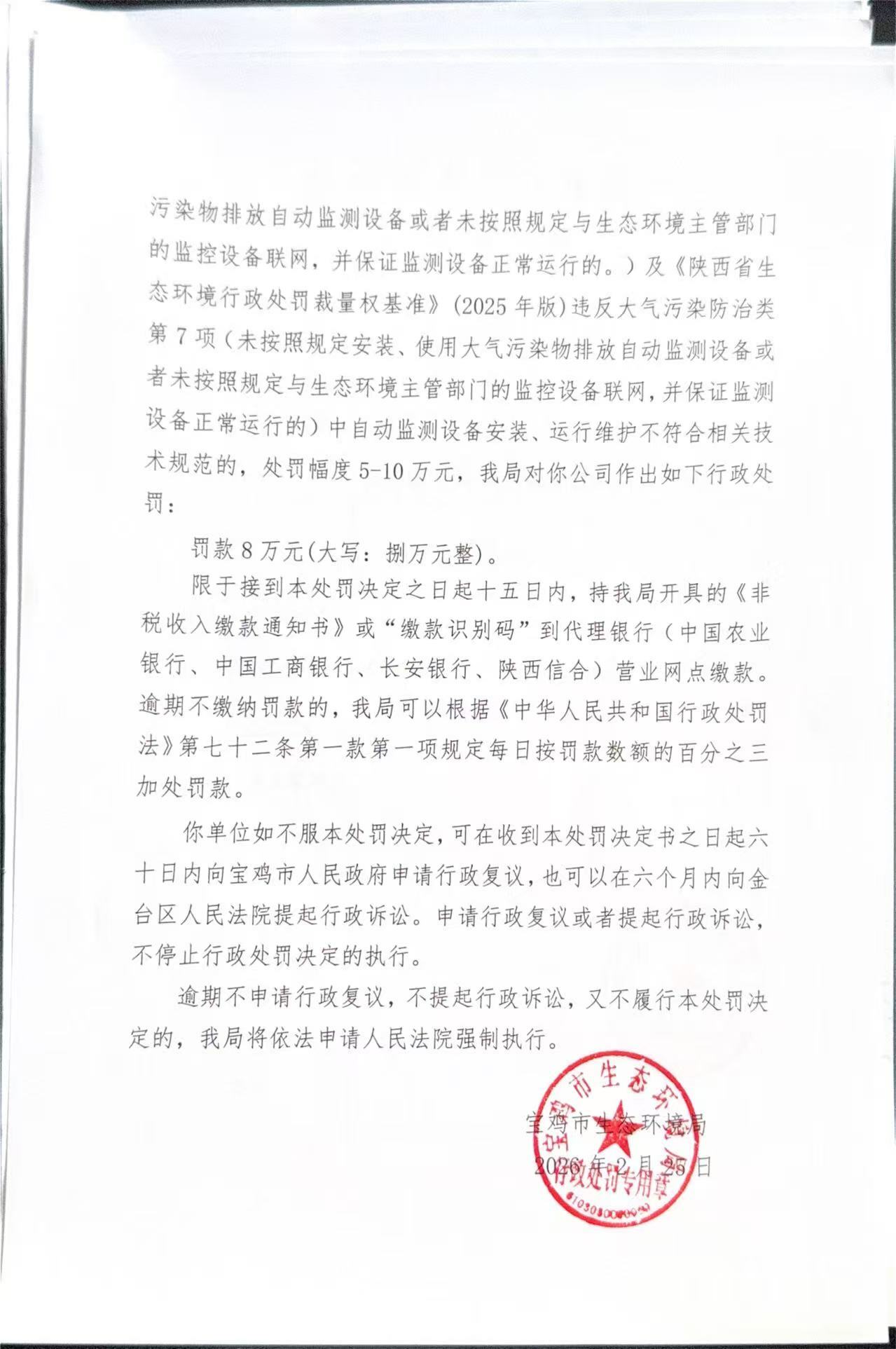 宝鸡市生态环境局行政处罚决定书 陕C环罚[2026]2号