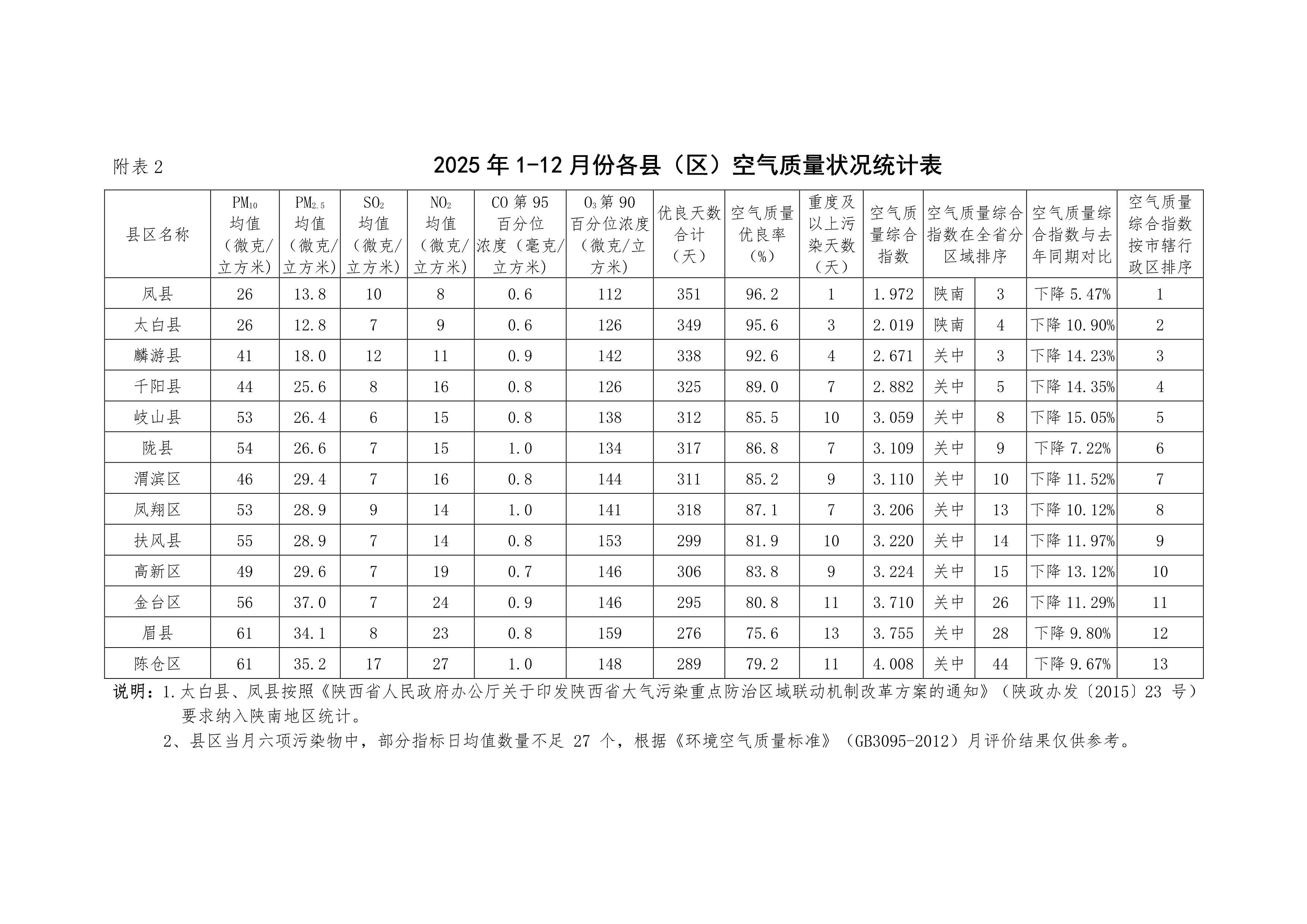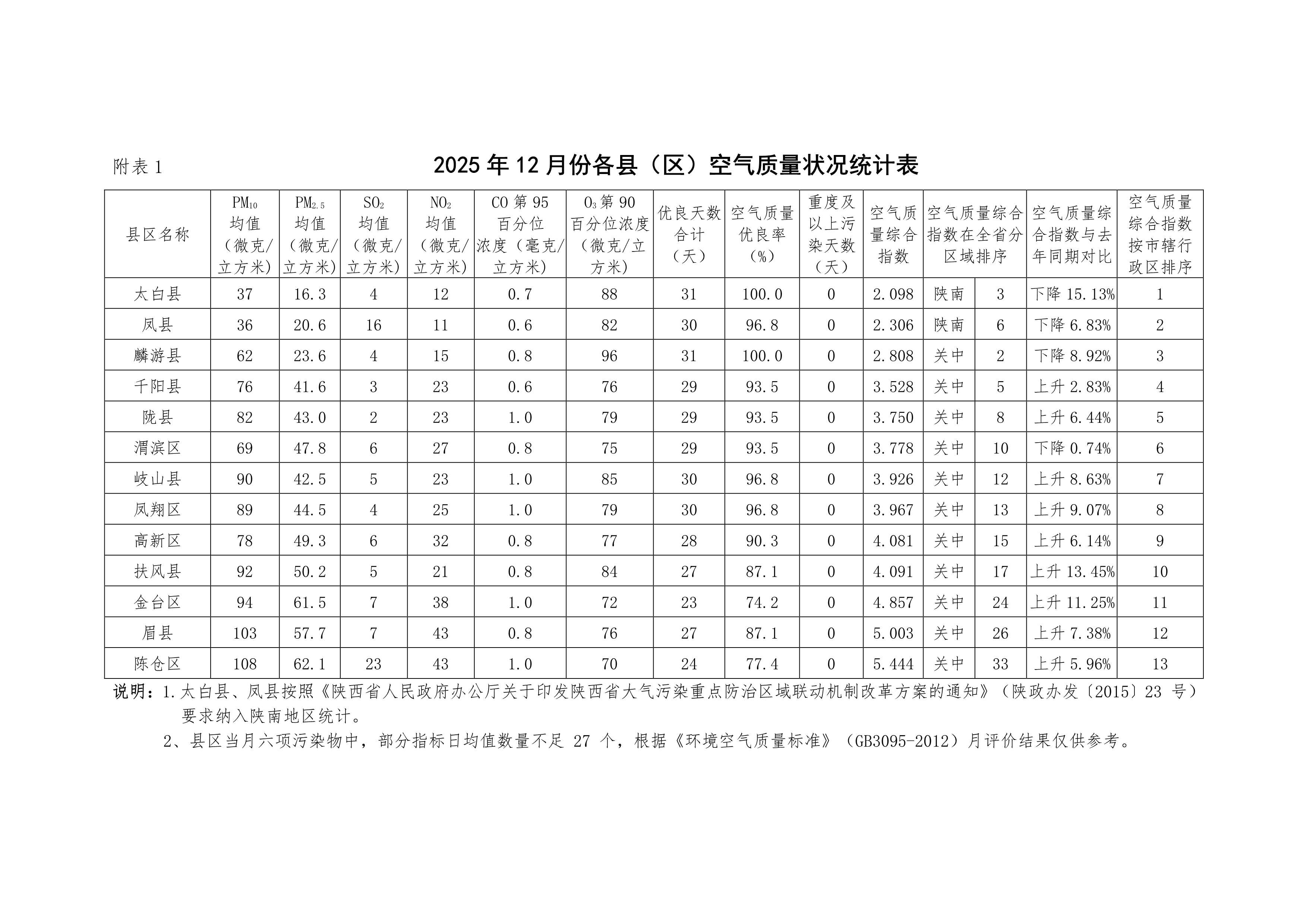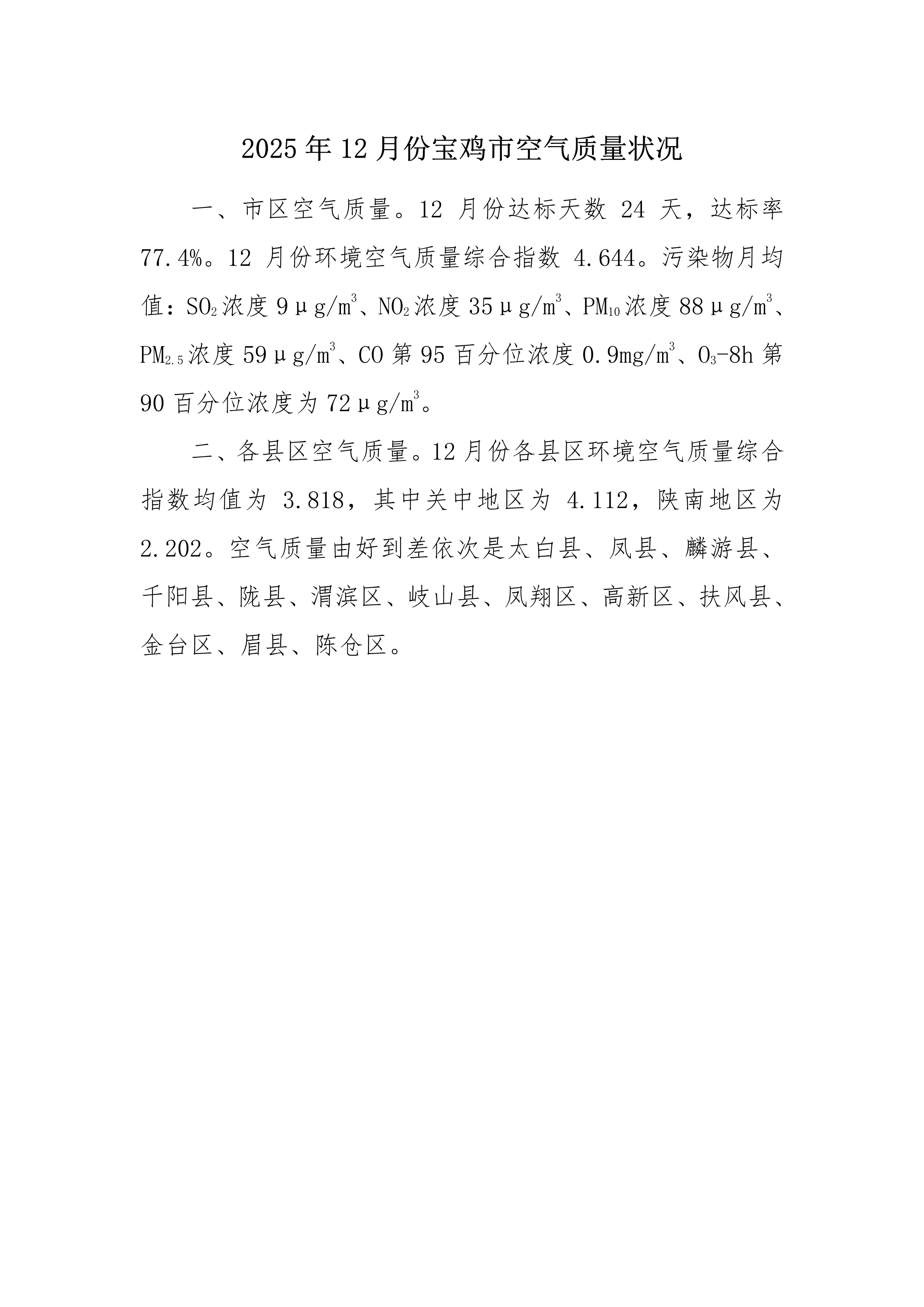 2025年12月份宝鸡市空气质量状况