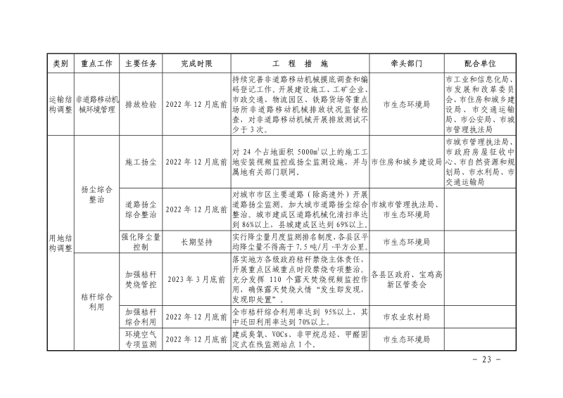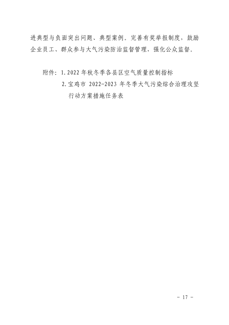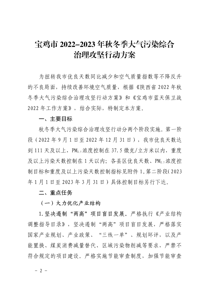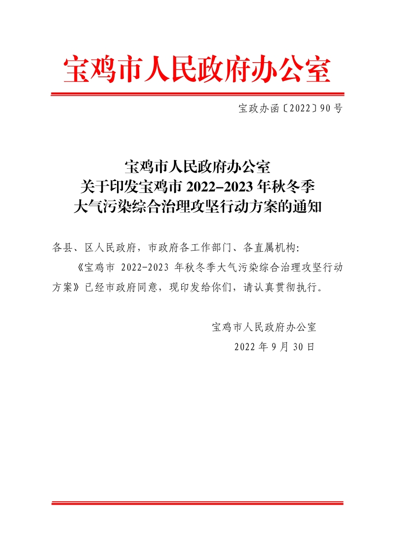 关于印发宝鸡市2022-2023年秋冬季大气污染综合治理攻坚行动方案的通知