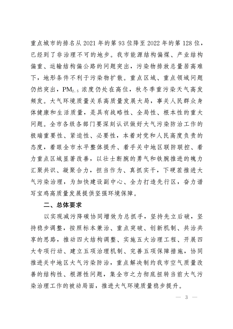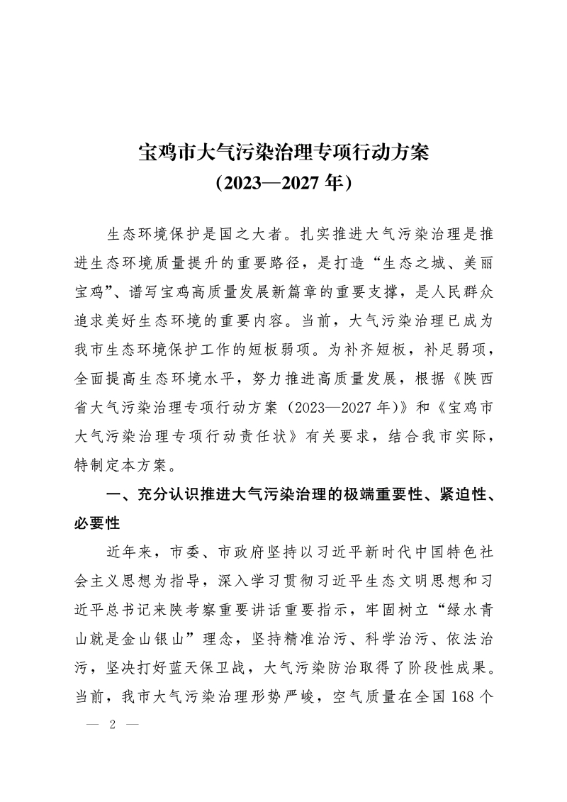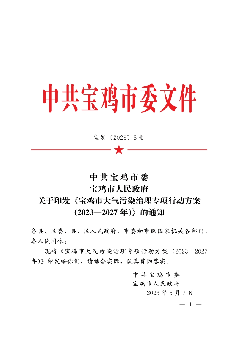 关于印发《宝鸡市大气污染治理专项行动方案(2023—2027年)》的通知
