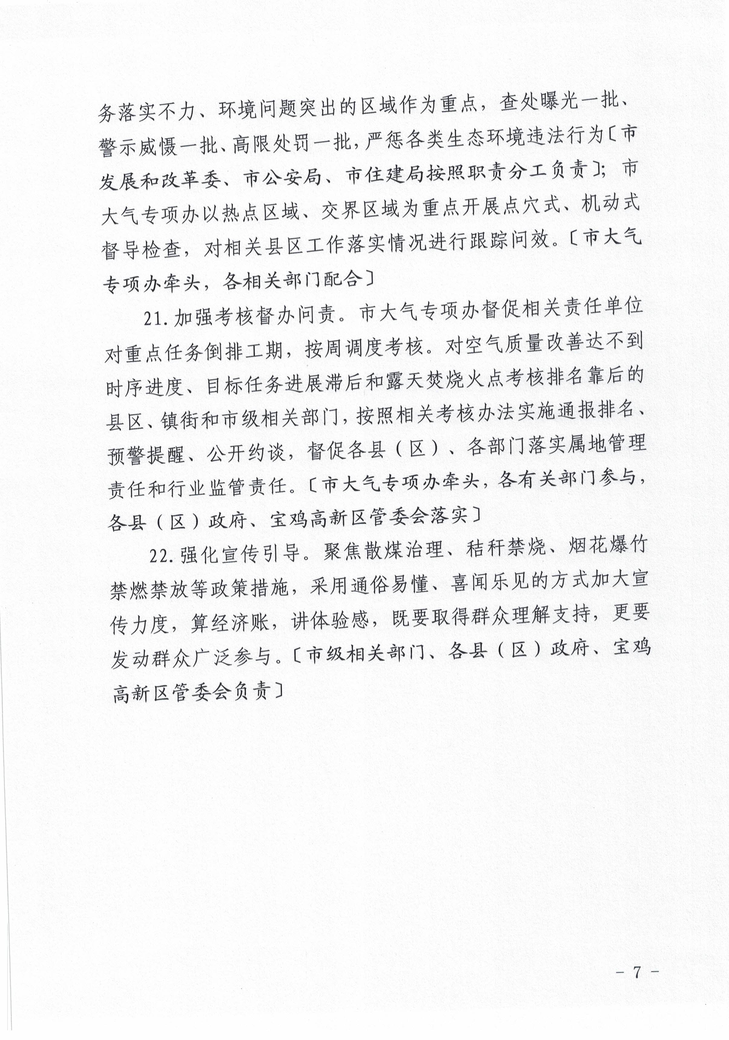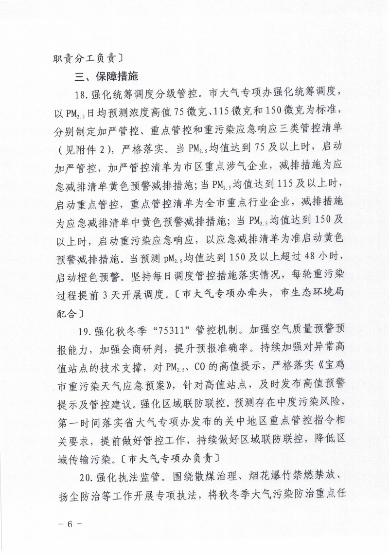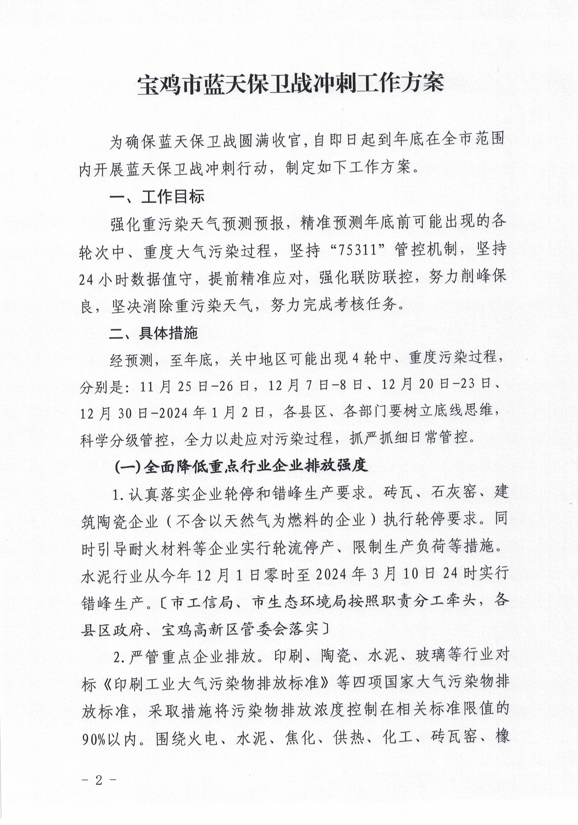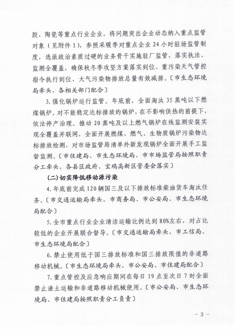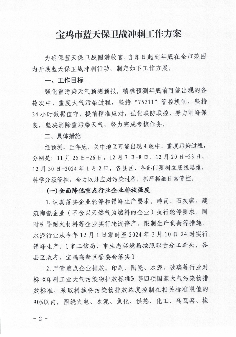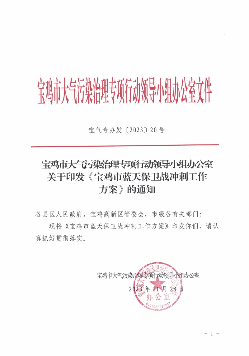关于印发《宝鸡市蓝天保卫战冲刺工作方案》的通知