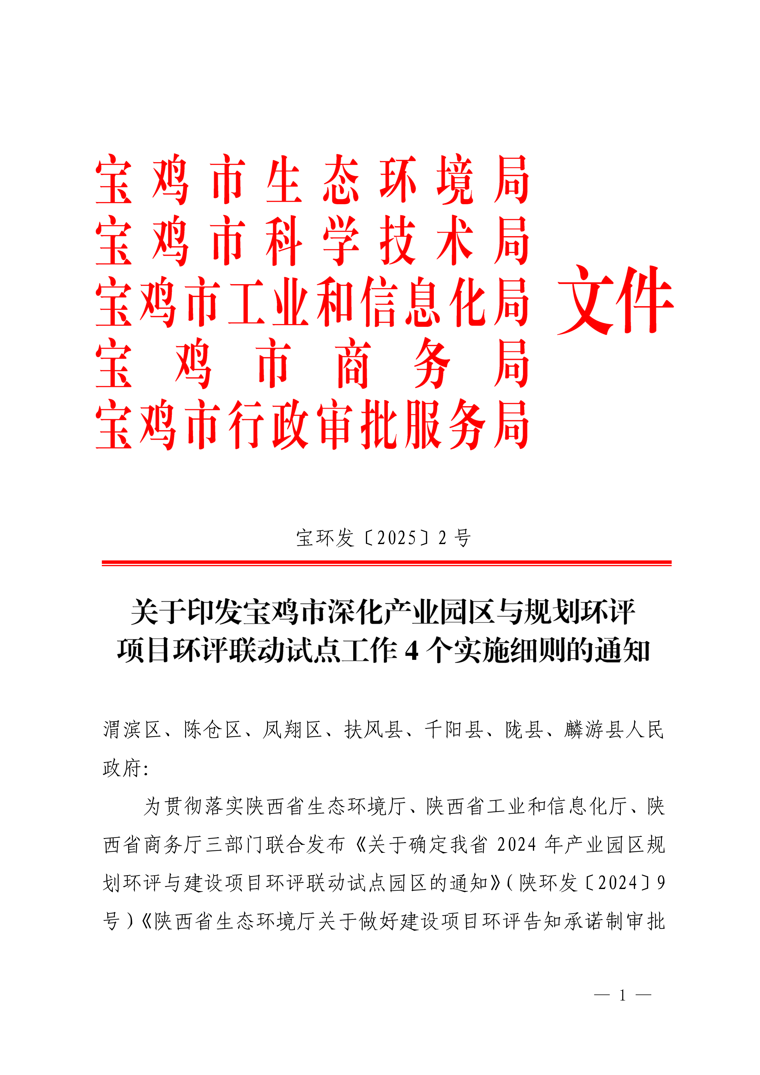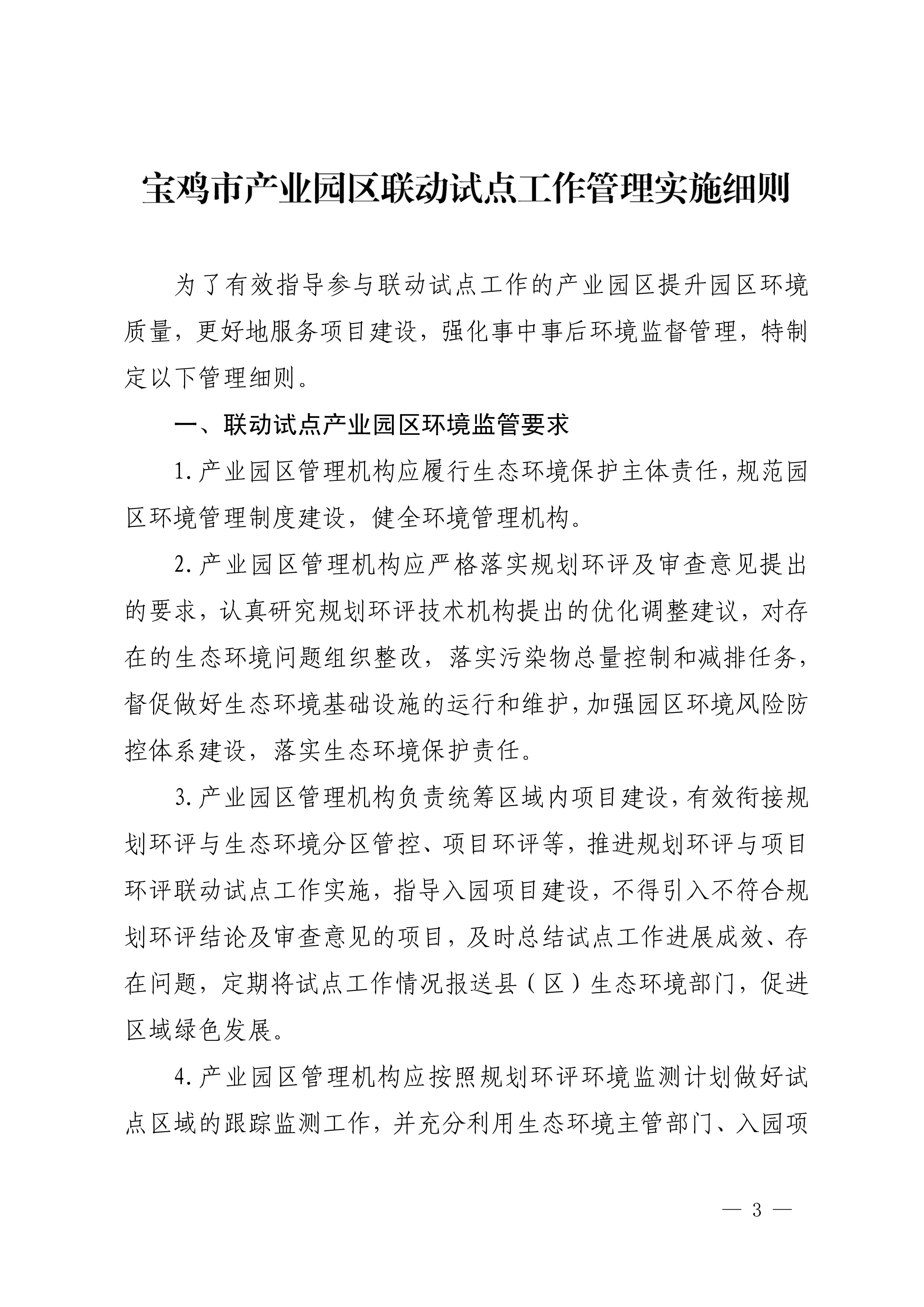 关于印发宝鸡市深化产业园区与规划环评项目环评联动试点工作4个实施细则的通知