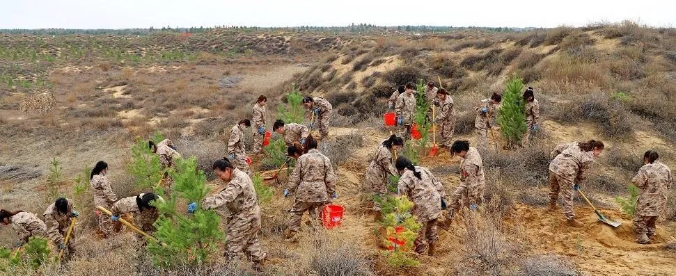白天,她带领姑娘们背着枪训练、防风治沙、植树造林、建设营房,与风沙搏斗!